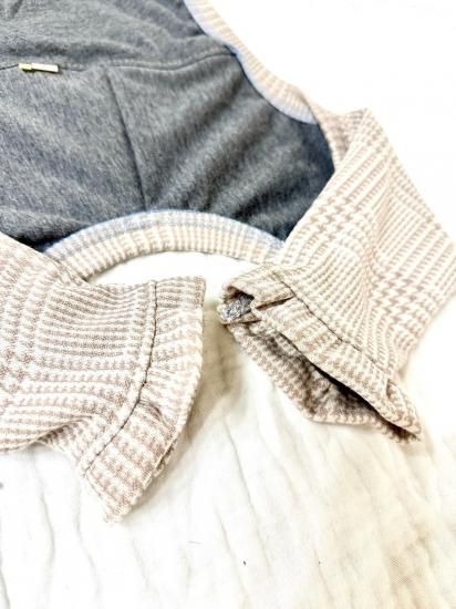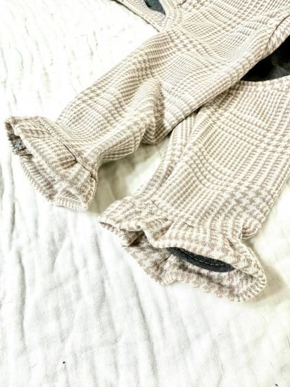 好評いただいておりますサロペットパンツ、ウール混のベージュ千鳥格子で裾がフリルのタイプを作りました!